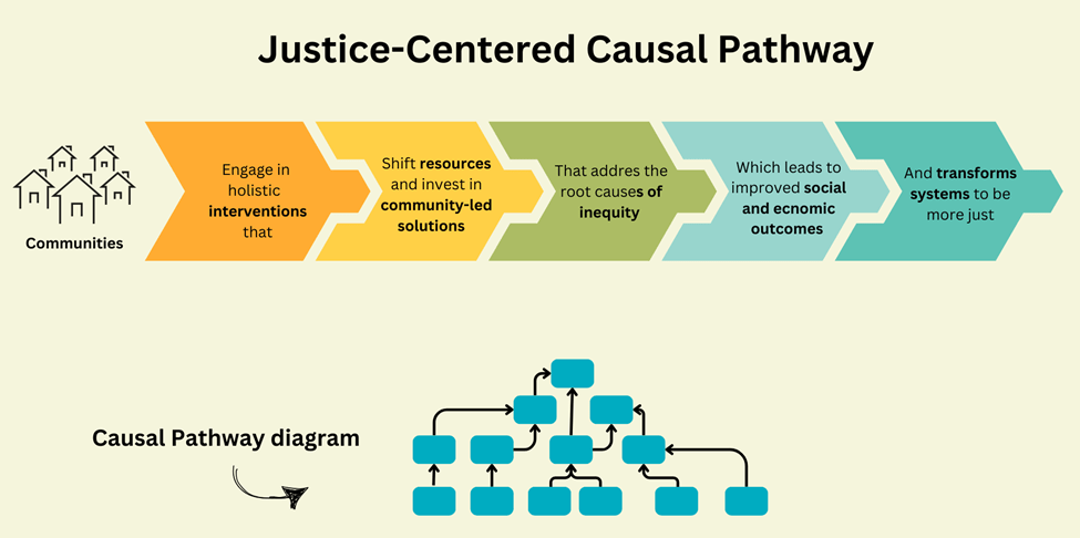 As the saying goes, “we measure what we treasure, and we treasure what we measure.” Only focusing on return on investment (ROI) can overlook what actually matters to today’s philanthropies. But what is the best way to identify what to measure? Causal pathways are diagrams that illustrate how events, factors, and actions link together. They map the chain of events that lead to a specific outcome or impact. Causal pathways can also show changes you can measure in the short, medium, and long term. Many fields use causal pathways. I have found they are especially useful for showing change in complex systems. Below is an example of a high-level causal pathway and what a more detailed diagram would look like.